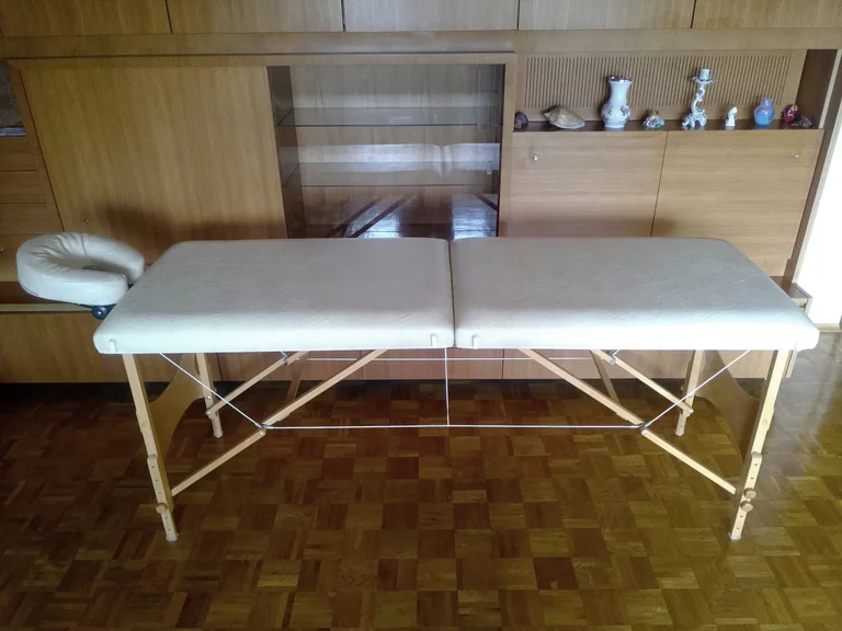 einer Therapieliege in einem schönen warmen Zimmer statt, wenn
